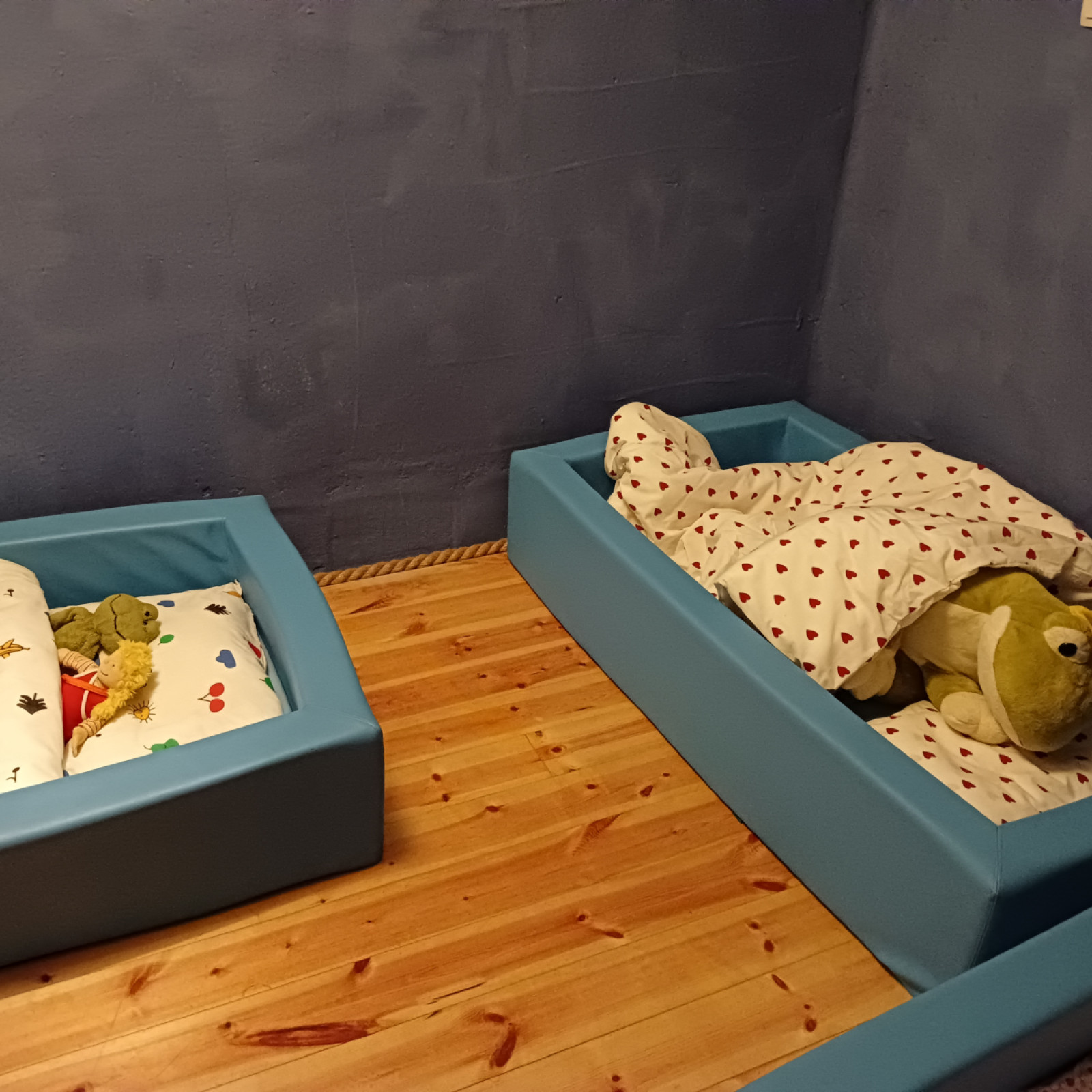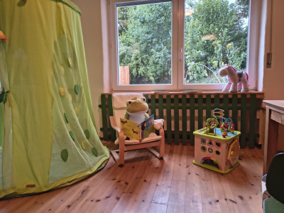 Die Räume meiner Kindertagespflege bieten den Kindern viel Platz zum Toben, Spielen und Schlafen. Es stehen 2 liebevoll eingerichtete Räume (Spiel- und Ruheraum) mit einer Fläche von insgesamt ca 40 Quadratmetern für vielfältige Entdeckungen bereit. In unserem Haus sind separate Räume für die Kindertagespflege eingerichtet. Die Einrichtung ist modern und mit der kindgerechten Ausstattung fühlen wir uns hier jeden Tag wohl. Sicherheit ist beim Spielen wichtig und so sind die Räume abwechslungsreich ausgestattet, was unbekümmertes Spielen ermöglicht.